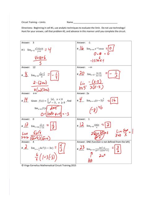 Circuit Training Limits Answer Key. I wrote this circuit to give calculus students practice with reading and recognizing the limit definition of the derivative and then evaluating the derivative by. Continue the process as you answer each limit and label the corresponding cells a through p.