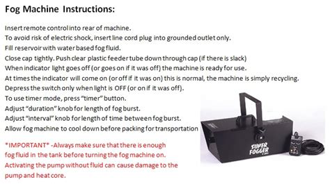 This can take a couple of minutes since. Make sure you have all the necessary components, along with the appropriate fog machine fluid (juice), cleaner and, if desired, a fog machine timer and. Remote operation of on/off function is possible.